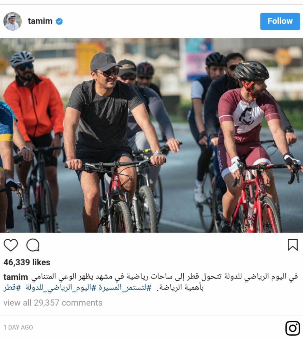 ونشرت أول صورة عبر الحساب لأمير قطر أثناء المشاركة في فعاليات اليوم الرياضي.