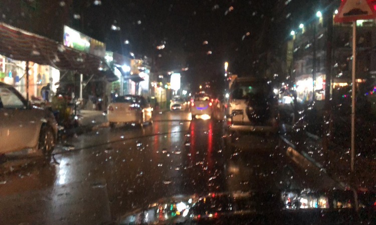 واظهرت صور نشرتها NRT في مدينة كربلاء اليوم الخميس، ارتفاع مياه الامطار في شوارع المدينة.