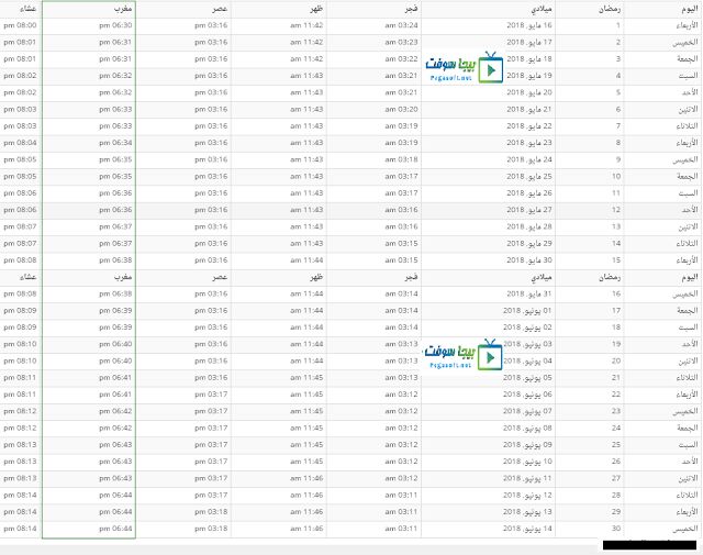 هذه امساكية رمضان ٢٠١٨ وسوف تبين لكم كل ما تحدثنا عنه بالأعلى وهو موعد اول يوم في الصيام " الصوم " ومتى أول ايام عيد الفطر ؟ ومواقيت الصلاة وصلاة التراويح وغيرها من التساؤلات الاخرى.
