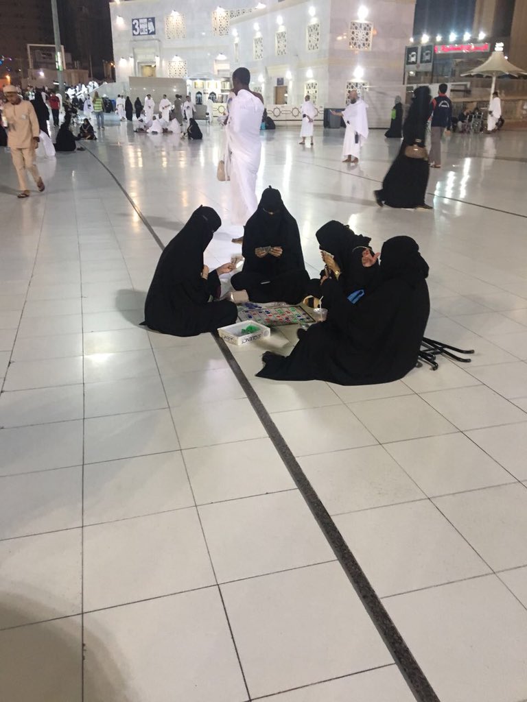 ووفقا للصورة المتداولة التي رصدتها “وطن”، فقد ظهرت أربع نساء سعوديات يرتدين النقاب وهن يفترشن ساحة الحرم المكي ويقمن بلعب “البلوت” دون رادع او مستنكر لما يقمن به.