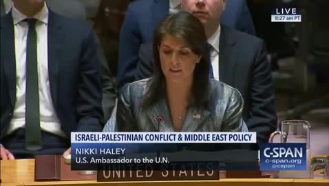 وقالت هيلي في الكلمة: "أشعر بالأسف أن يغادر الرئيس عباس قاعة مجلس الأمن دون الاستماع إلينا، ونرحب به قائدا للشعب الفلسطيني".