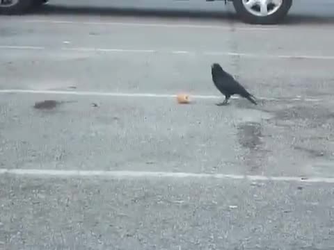 وقام الغراب باقتطاع جزء من الخبز، وذهب به تجاه الفأر ووضعه له على الأرض، قبل أن يظهر الأخير مجددا ليحصل على هديته.