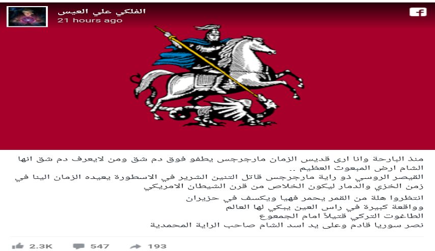 “مارجرجس يطفو فوق دمشق ” بوتين صرح للعالم منبر الحق في دم شق ابشركم بنهاية الدمار ؟اليكم التفاصيل