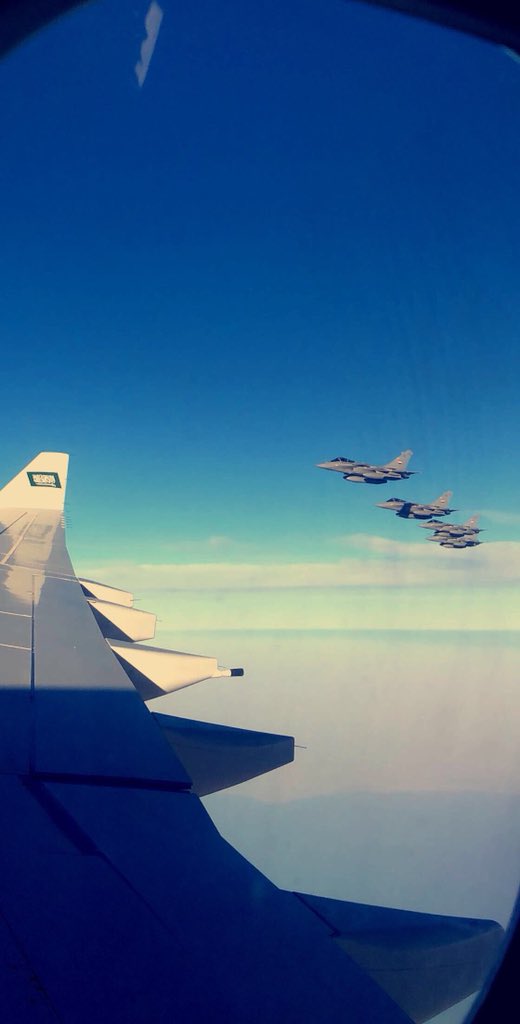 وعن الإجراءات المتبعة في مثل هذه الحالة، قال الحلبي إن الطائرات الحربية تخرج من قواعدها وتكون متأهبة لانتظار طائرة الضيف المهم، وتحلق حول طائرته فور وصولها أجواء مصر بتنسيق كامل مع طاقم طائرة ولي العهد السعودي، وفور أن تبدأ طائرة الضيف الكبير في اتخاذ إجراءات الهبوط لمطار القاهرة تعاود الطائرات الحربية مكانها وتغادر لقواعدها.