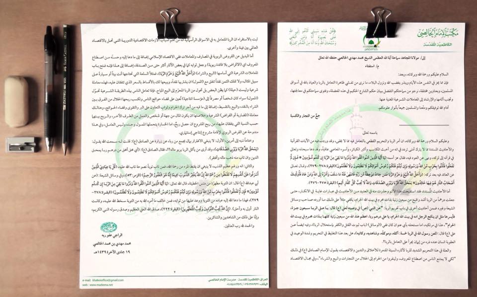 واوضح الخالصي، بحسب البيان، ان “البديل عن القروض الربوية في المصارف والمعاملات، هو ان تتفق مع (الممول) على ان يشتري لك بيتاً أو سيارةً ويبيعها لك بالأقساط بالسعر الذي تتفقان عليه، فهذه معاملة شرعية وليست حيلة كما يظن البعض، وبهذه الطريقة الشـرعية يتحوّل الممول سواء كان شخصاً أو مصرفاً إلى مؤسسة انتاجية”.