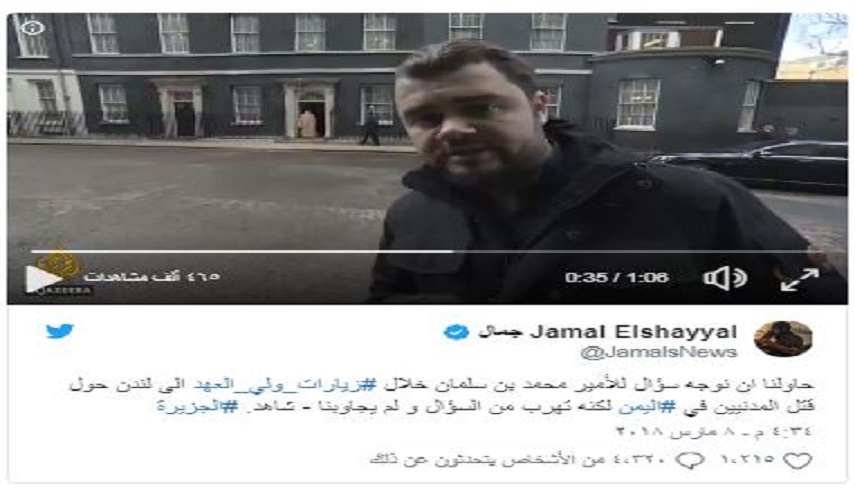 وقال الشيال لابن سلمان: "متى تتوقفون عن قتل المدنيين الأبرياء في اليمن؟"، فيما لم يرد الأمير السعودي على الصحفي، وأكمل طريقه نحو ماي.