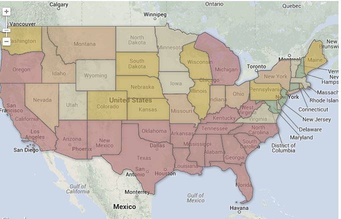 وقد عرض الموقع خارطة توضيحية للمناطق الأكثر فقرًا في الولايات المتحدة، حيث يرمز كل لون فيها إلى نسبة الفقر بالمنطقة المشار إليها، فالمناطق الملونة باللون الأخضر تقل نسبة الفقر فيها عن 11 %، واللون البني يرمز لمناطق بها نسبة فقر ما بين 11:13 % بينما يوجد فقر بنسبة 13:15 % في المناطق ذات اللون الأصفر، واللون البرتقالي يرمز لمناطق بها فقر تصل نسبته إلى 15:17 % أما اللون الأحمر فيرمز لنسبة فقر أعلى من 17%.