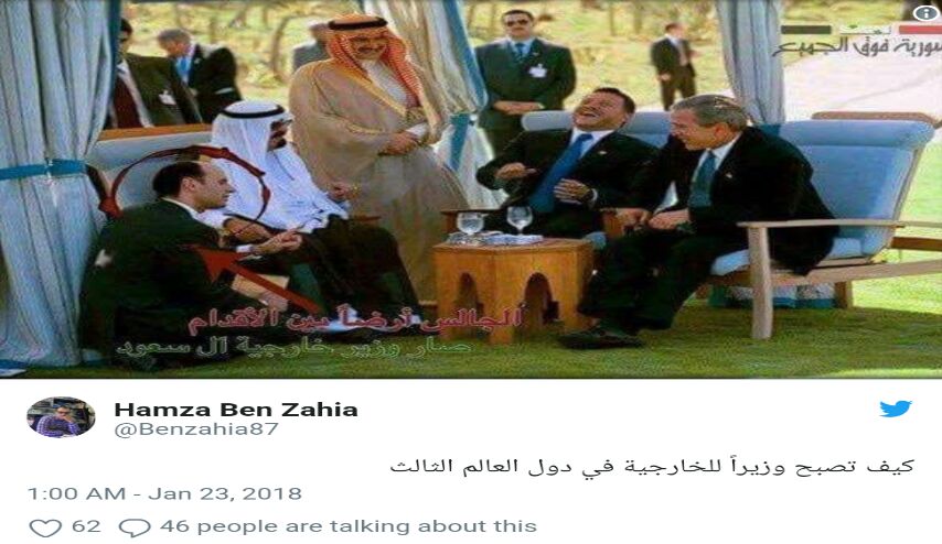 وكان ناشطون قد كشفوا عبر موقع التدوين المصغر “تويتر” في شهر يناير/كانون الثاني الماضي صورة قديمة ومهينة بشكل كبير لوزير الخارجية السعودي عادل الجبير حينما كان سفير للمملكة في الولايات المتحدة الأمريكية.