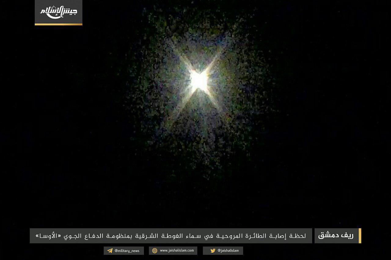 أعلن فصيل "جيش الإسلام" الإرهابي عبر وسائل إعلامه الرسمية عن إطلاقهم صاروخ من منظومة أوسا للدفاع الجوي بإتجاه مروحية سورية.