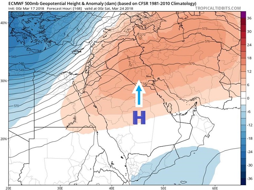 وأضاف أن "سبب ذلك يعود الى سيطرة مرتفع جوي شبه مداري في طبقات الجو العليا مما يؤدي الى (استقرار) تام في الاجواء هذا الاسبوع".