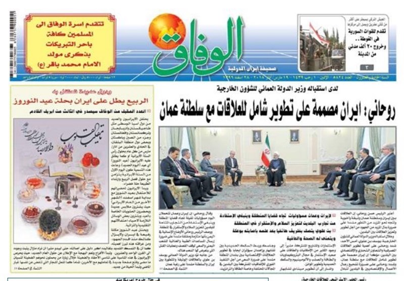 روحاني خلال استقبال وزير الخارجية العماني: ايران وعمان يقع على عاتقهما مسؤولية جسيمة تجاه قضايا المنطقة