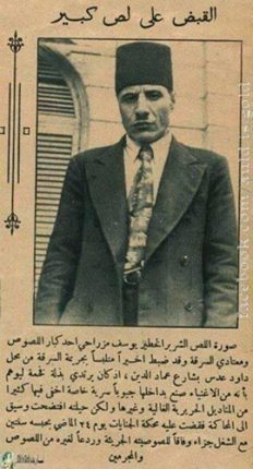 وأشارت الصفحة إلى أنه ألقي القبض على يوسف مزراحي بعدما دخل محل الخواجة داود عدس بشارع عماد الدين، وأبدى رغبته فى شراء أثواب من الحرير، ووقف أمام العامل يفحص المعروضات لكنه تظاهر بالاستغناء وإلتف إلى الباب محاولا الإنصراف.