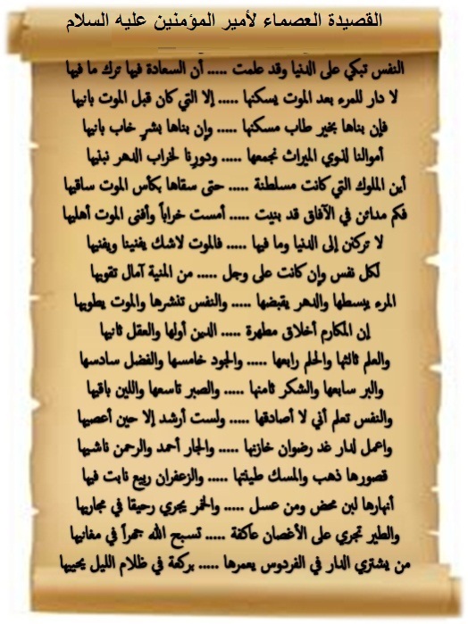 ذهب رجل إلى أمير المؤمنين علي بن أبي طالب عليه السلام ليكتب له عقد بيت ، فنظر عليه السلام الى الرجل فوجد ان الدنيا متربعه على قلبه فكتب: اشترى ميت من ميت بيتا في دار المذنبين له أربعة حدود ، الحد الاول يؤدي الى الموت والحد الثاني يؤدي الى القبر ، والحد الثالث يؤدي الى الحساب ، والحد الرابع يؤدي اما للجنه واما للنار ، فقال الرجل لعلي عليه السلام : ما هذا يا أمير المؤمنين ، جئت تكتب لي عقد بيت ، فكتبت لي عقد مقبره فقال له أمير المؤمنين صلواته تعالى عليه: