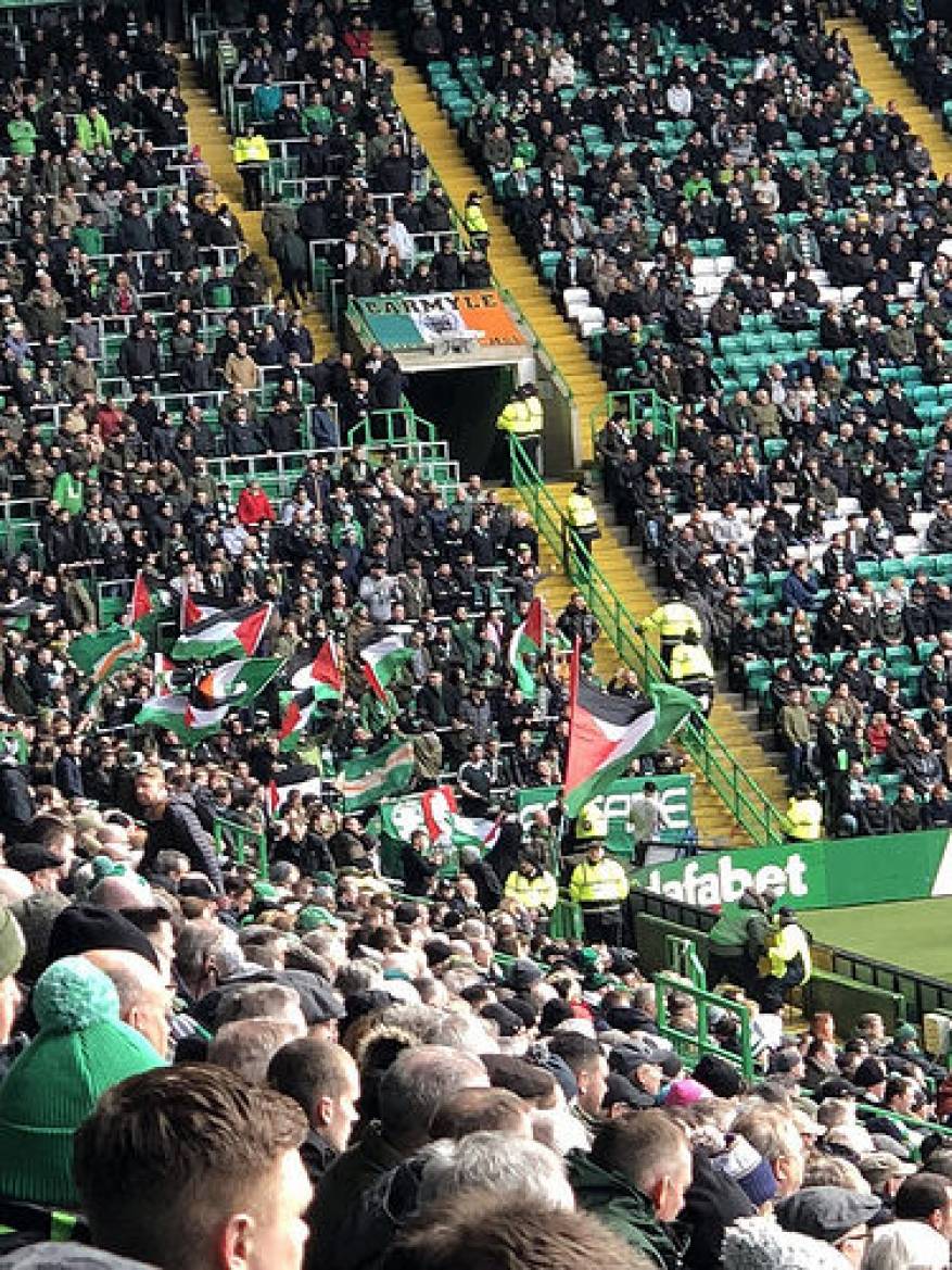 ورفعت جماهير سلتيك أعلام فلسطين بكثافة في مباراة فريقها أمام ضيفه روس كاونتي، والتي انتهت بثلاثية نظيفة لـ "أصحاب الأرض والجمهور"، ضمن الجولة الـ 32 من الدوري الأسكتلندي لكرة القدم.