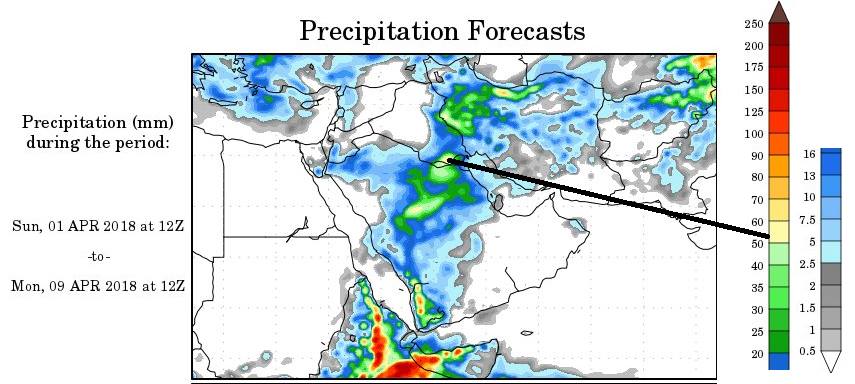 وبحسب خارطة هطول الامطار خلال الأيام المقبلة، فان مدن الجنوب واجزاء من شرق العراق ستكون الاوفر امطارا، إضافة إلى مدن الموصل واربيل ودهوك والغربية والنجف والبادية هي الاقل امطار.