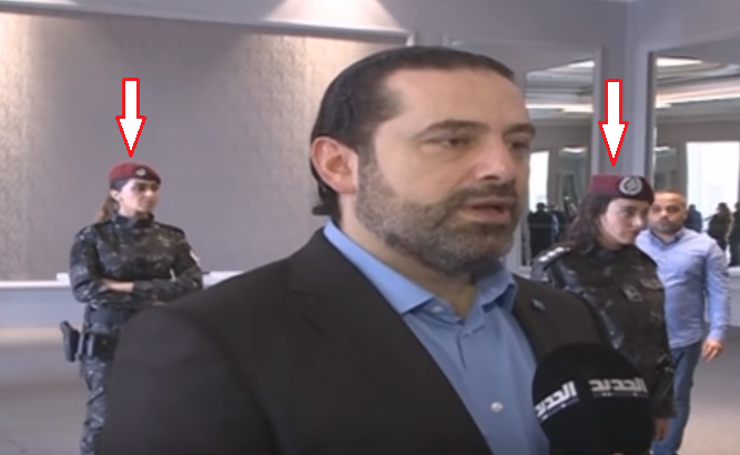 وخلال تصريحاته لقناة “الجديد” حول ما أثاره الفنان اللبناني فضل شاكر مؤخرا وطلبه من “الحريري” التعهد بضمان محاكمة نزيه له ظهرت خلف “الحريري” ثلاث نساء بالبزة العسكرية، إحداهن برتبة، اتضح لاحقا أنهن من الحرس الشخصي له.