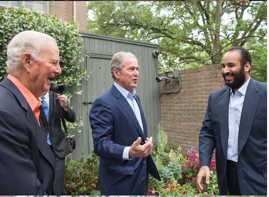 وما أثار غضب الكثيرين، هو زيارة محمد بن سلمان لرئيسي الولايات المتحدة الأمريكية السابقين، جورج بوش الأب والابن، في ولاية تكساس الأمريكية، إضافة لإقامته حفل عشاء فاخر على شرف الاب.