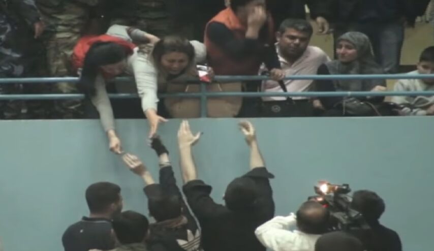 وتم استقبال المخطوفين في أحد أجنحة مجمع الفيحاء الرياضي، حيث بكى المتواجدون في الجناح محاولين الاتصال بأحبائهم وأقاربهم بعد هذا الغياب الطويل.