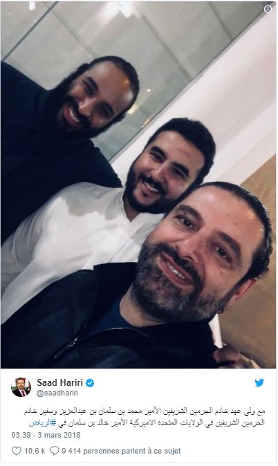 وكانت أول مرة ينشر فيها الحريري "سيلفي" مع الأمير محمد بن سلمان، أثناء انعقاد القمة العربية الإسلامية الأمريكية في العاصمة السعودية، التي حضرها الرئيس الأمريكي، دونالد ترامب.