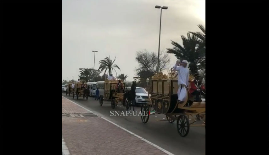 وأظهرت الفيديوهات عددا كبيرا من السيارات وعربات الخيول في أثناء توجهها إلى منزل العروس.