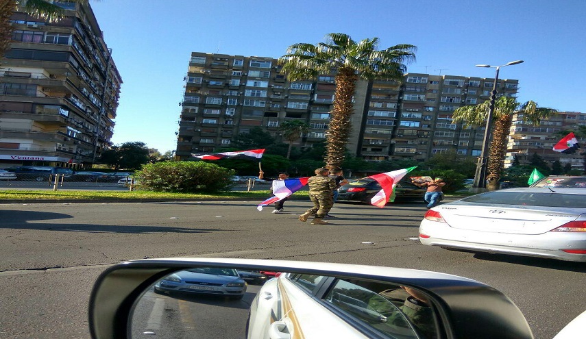 الصور المنشورة تظهر تصدي الدفاعات الجوية للصواريخ في الليل والهدوء الذي يسود العاصمة دمشق صباحا .