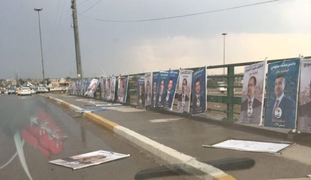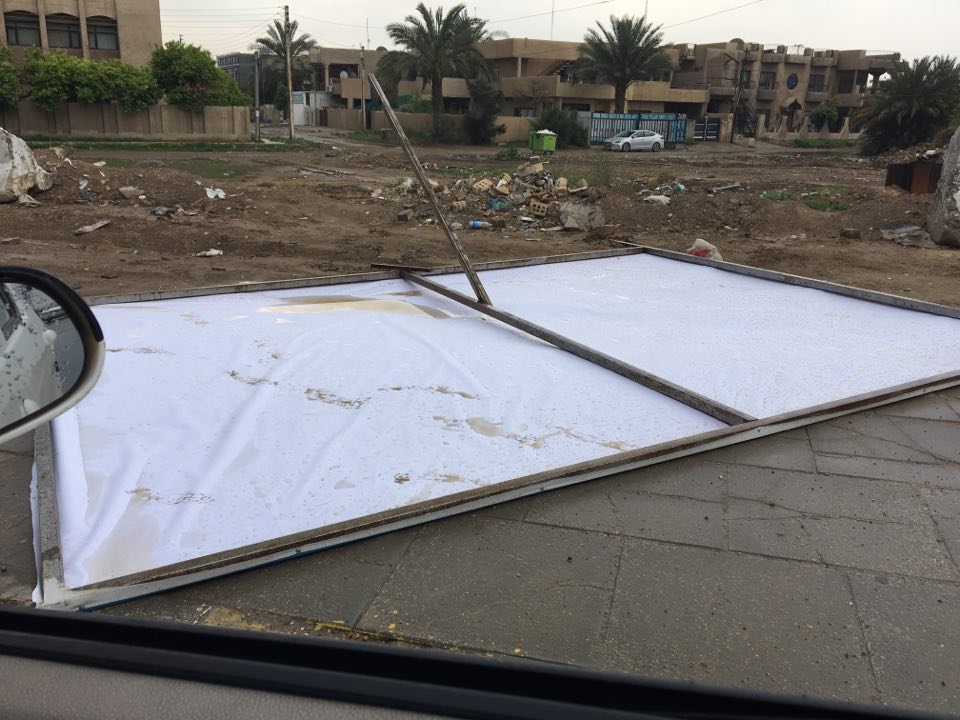 واظهرت صورا اليافطات والصور الدعائية التابعة للمرشحين والائتلافات السياسية وقد سقطت في شوارع عدد من مناطق بغداد، بفعل رياح قوية ومفاجئة شهدتها اجواء العاصمة بغداد اليوم. هذا وبدات الحملة الانتخابية في العراق، يوم السبت الماضي 12 نيسان 2018 وهو الموعد الذي حددته مفوضية الانتخابات .
