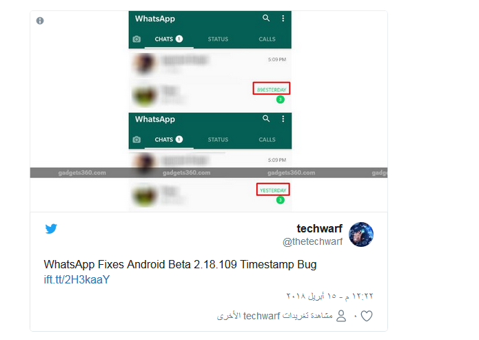 ويعمل الخلل على إفساد التوقيت الزمني للرسائل وتحديثات الحالة، بحسب تقرير لموقع "newsbytesapp" المختص في أخبار التقنية.