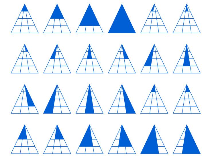 وتراوحت أغلب إجابات المشاركين ما بين 4 إلى 44 مثلثاً، فيما توصل بعضهم للإجابة الصحيحة – كما يُعتقد – وهي 24 مثلثاً.
