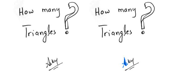 إلا أن الخدعة الحقيقية في هذا الاختبار، تمثلت في أن الإجابة الصحيحة كانت 25 مثلثا وليس 24، إذا كان هناك مثلثا مستترا في توقيع صاحب الاختبار.