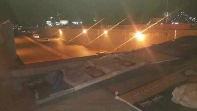 واظهرت صورا تناقلها ناشطون على موقع التواصل الاجتماعي الفيسبوك، سقوط سياج الجسر الواقع على الطريق الرئيسي الذي يربط النجف بكربلاء.
