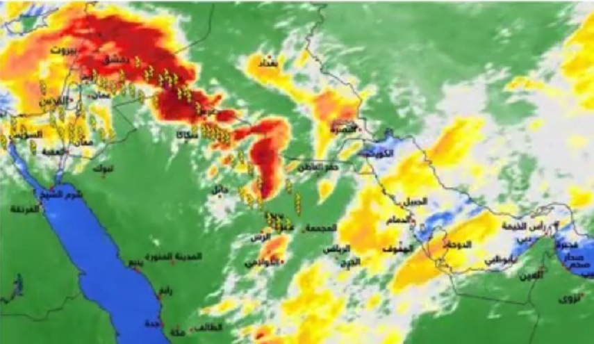 وأضاف "هذا المنخفض الذي سبب فيضانات في المناطق التي اثر عليها ومنها القاهرة والشام امس الاربعاء، وهو الان يؤثر بأمتداده على غرب البلاد بسحب رعدية ركامية عملاقة".