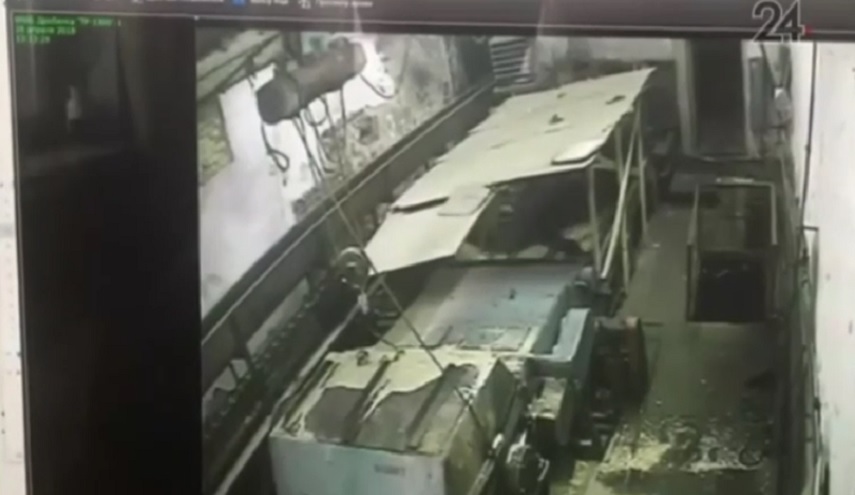 وأظهر فيديو ألتقطته الكاميرا لحظة وقوع الحادث، وصعد العامل لمتابعة عمل الماكينة والمساعدة في تسييرها بإزاحة القطع المتعثرة داخلها أثناء عملها، ليختل توازنه ويسقط.