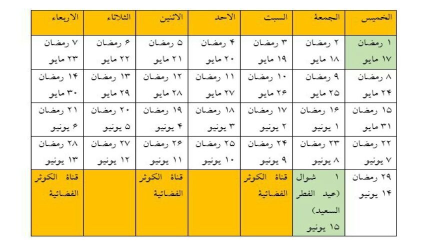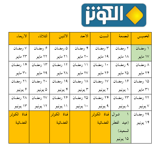 في عام 2018،من المتوقع أن يحل علينا شهر رمضان بتاريخ 17 مايو ، و سيقع عيد الفطر بتاريخ 14 يونيو.