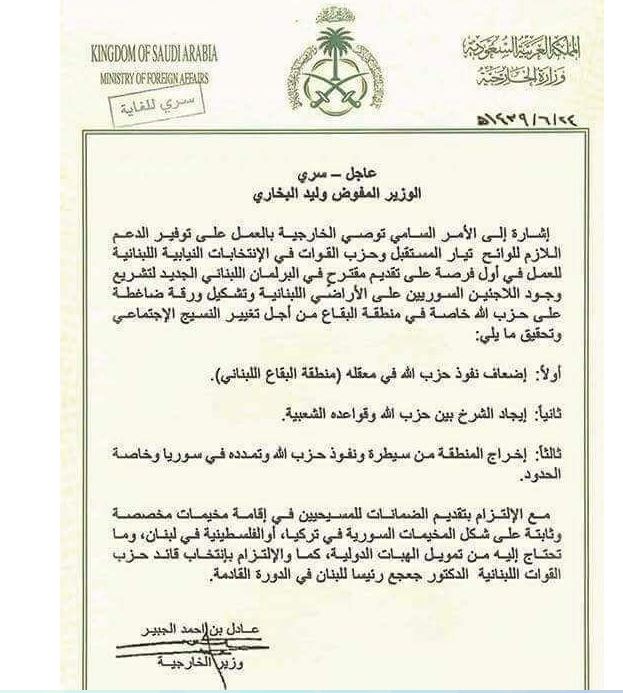 وتداول ناشطون على مواقع التواصل الاجتماعي الوثيقة السرية التي تظهر دعم السعودية لحلفائها في بعض اللوائح بهدف إضعاف حزب الله وإيجاد الشرخ بينه وبين جمهور المقاومة.