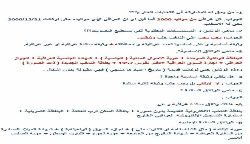 وادناه نص التعليمات الصادرة من المفوضية العراقية للانتخابات: