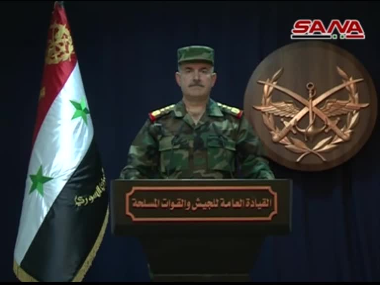 وأكد البيان أن الجيش السوري جاهز للتصدي لأي عدوان بكل مسؤولية وحزم ويؤكد في الوقت ذاته على عقم أي محاولات لدعم الإرهاب المتداعي تحت ضربات الجيش.
