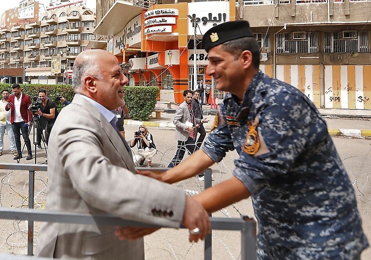 وتظهر صور العبادي قبيل دخوله مركز الاقتراع وهو يخضع للتفتيش من قبل شرطي عراقي.