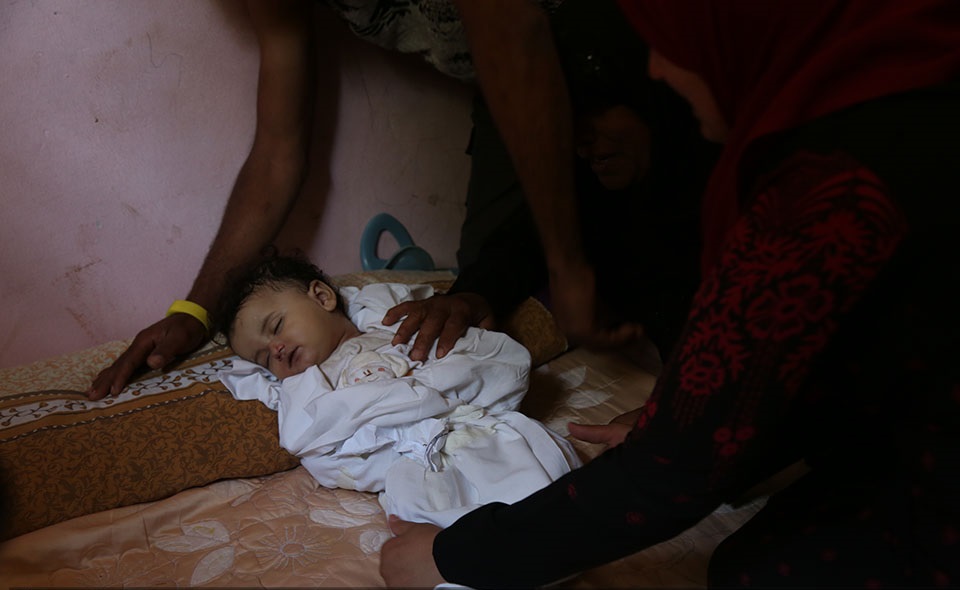 في أحضان أمها قتلها، وصعدت الروح من الجسد الصغير، لتشكو إلى الله ظلما وقهرا وعذابا يتعرض له شعب قاسى ألوان المآسي منذ سبعة عقود.