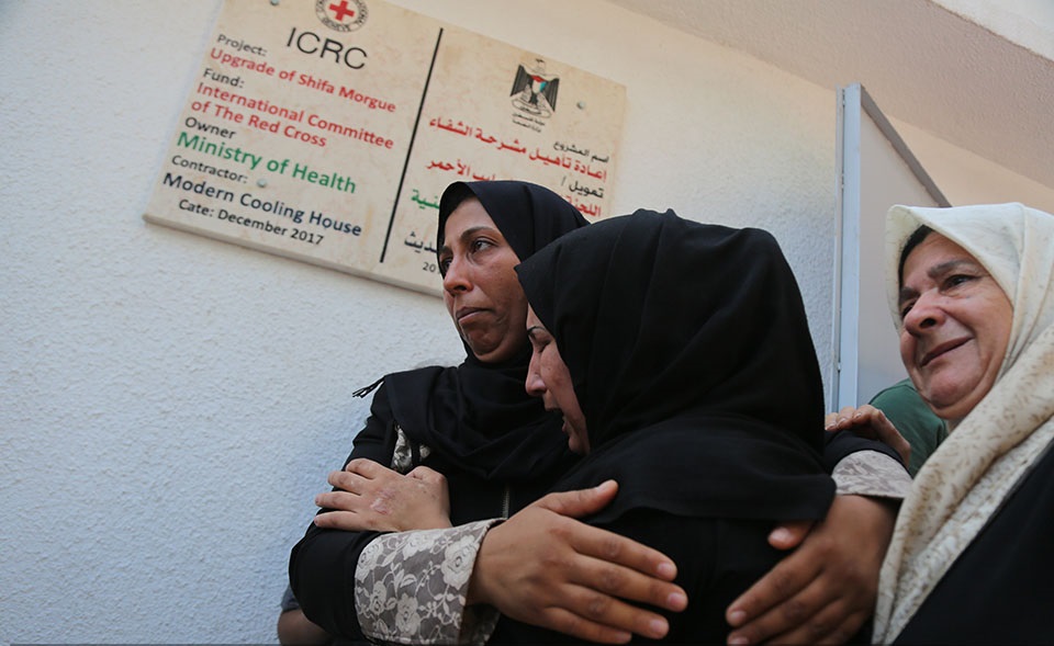 بكت والدة ليلى وشعرت بالوجع، وشعرت بالحزن، كأي أم تودع نجلها شهيدا، في خضم مسيرات العودة الكبرى، وكله فداء لأرض جبلت بالدم.