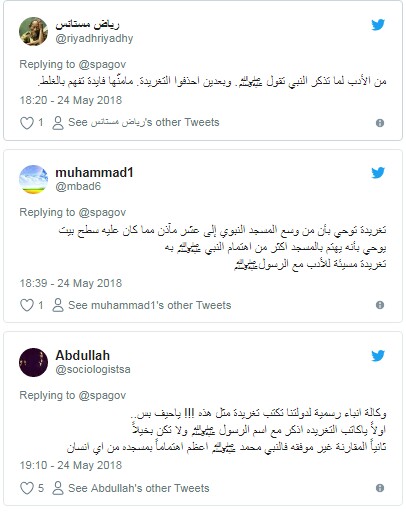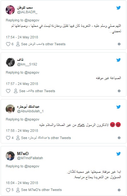 واتهم ناشطون وكالة الأنباء السعودية بالإساءة إلى النبي عليه الصلاة والسلام، وعدم احترام مكانته من خلال صياغة التغريدة.