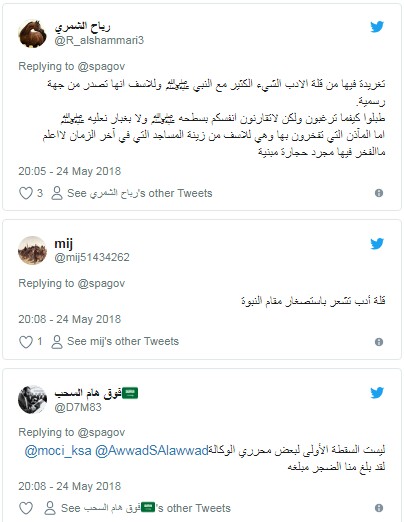 وأوضح ناشطون أن التغريدة توحي بالمزايدة على النبي عليه الصلاة والسلام بالاهتمام بالمسجد النبوي، قائلين إن مجال المقارنة غير ممكن على الإطلاق.