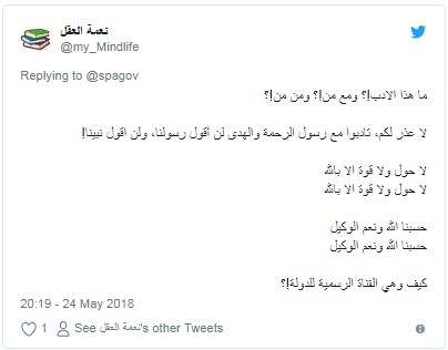 واعترض مغردون على صياغة التغريدة من ناحية أخرى، وهي كلمة "الرسول" مطلقة دون إلحاقها بالصلاة والسلام عليه، لا سيما أنها تغريدة صادرة من وكالة أنباء دولة لا تزال تعرف نفسها بأنها دولة إسلامية.