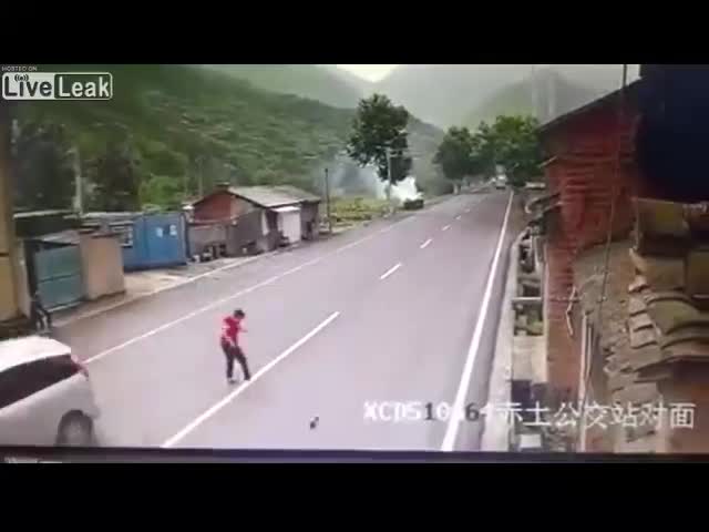 وقامت السيارة المسرعة بدهس حذاء الرجل فقط، أما هو فلم يصب بأي أذى، ولو تأخر في سيره أجزاء من الثانية لكان اليوم في عداد الأموات.