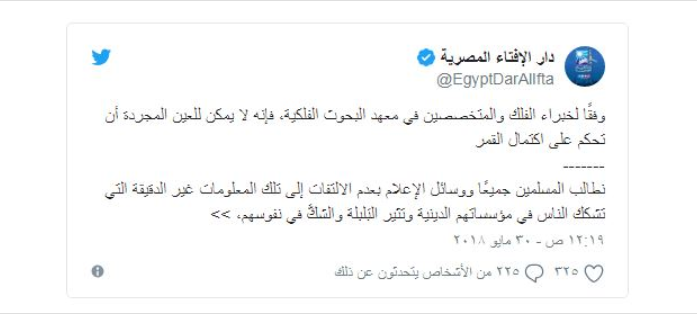 وجاء طلب الإحاطة بسبب تداول مستخدمي المواقع صورا وفيديوهات للقمر في السماء، وهو يبدو شبه مكتمل في طور "البدر" باليوم الثاني عشر من شهر رمضان.