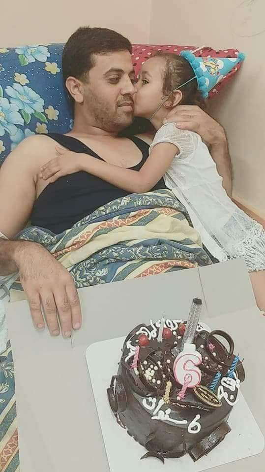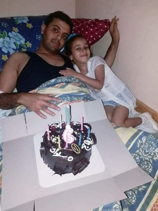 على سرير الإصابة، وقبل أيام فقط من إعلان استشهاده، كان الحب والفرح والسعادة، كأيّ إنسان يحمل في قلبه حبًّا للحياة، حبًّا للفرح، حبًّا للحرية، كان الأب محمد مع طفلته يعيشان لحظات بهية يحتفلون معا بذكرى ولادة السعادة.