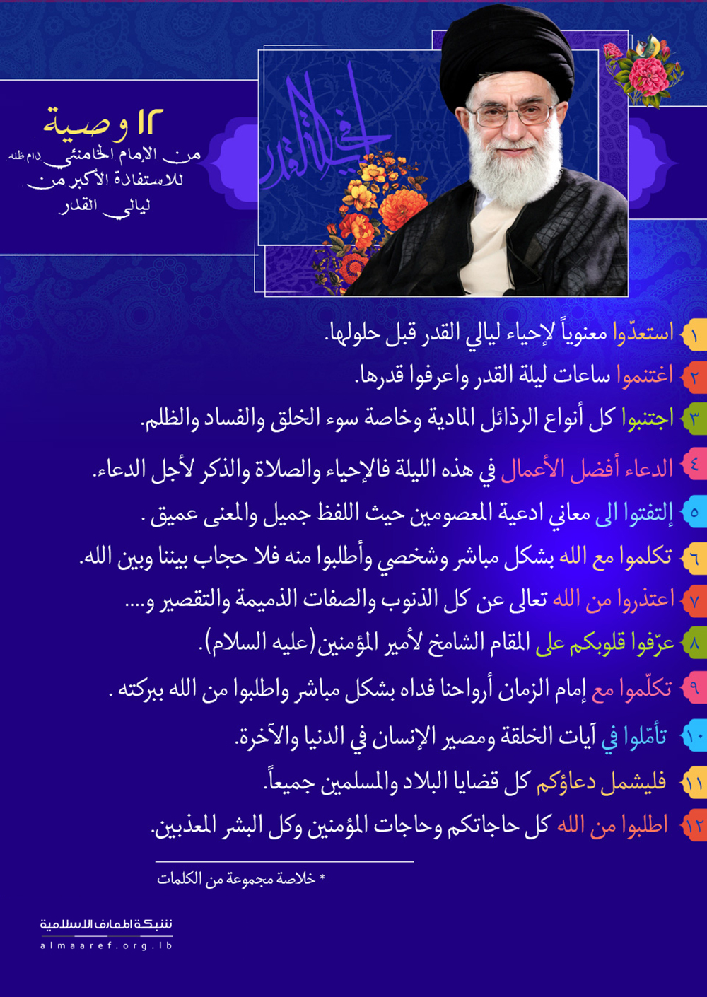 إنفوغراف.. وصايا الإمام الخامنئي (دام ظله) لإحياء ليالي القدر
