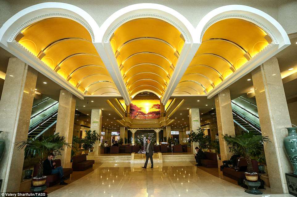 وفي المقابل التقط الصحفي الروسي صوراً لفنادق فارهة بالعاصمة الكورية، ومنها فندق كوريو الواقع بوسط المدينة، والمبني على أحدث نظام للطراز الحديث، وكذلك نشر صورة لوزارة الخارجية من الخارج.