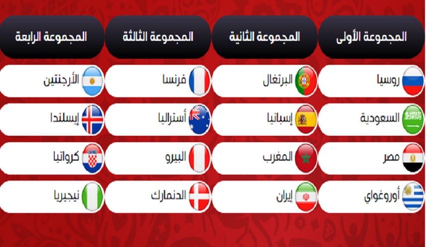 المجموعة الأولى: روسيا، السعودية، مصر الأوروغواي.