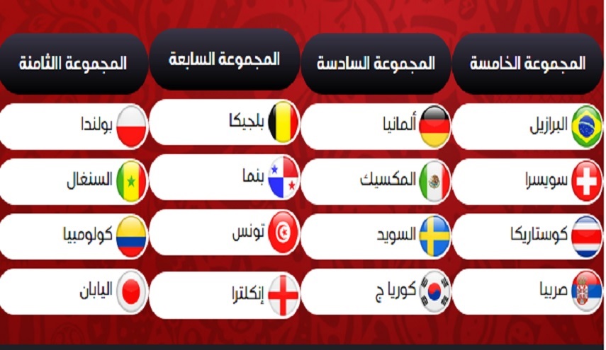 المجموعة الخامسة: البرازيل، سويسرا، كوستاريكا، وصربيا