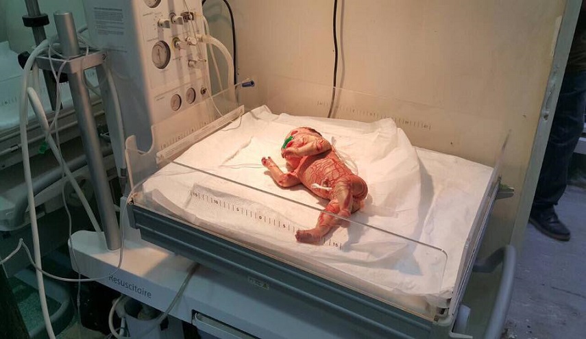 وأشار الى ان "الوليد المصاب بهذا المرض الوراثي يبدأ جسمه بالتقشر خلال الأسبوعين أو الثلاثة الأولى من العمر على شكل صفيحات جافة".